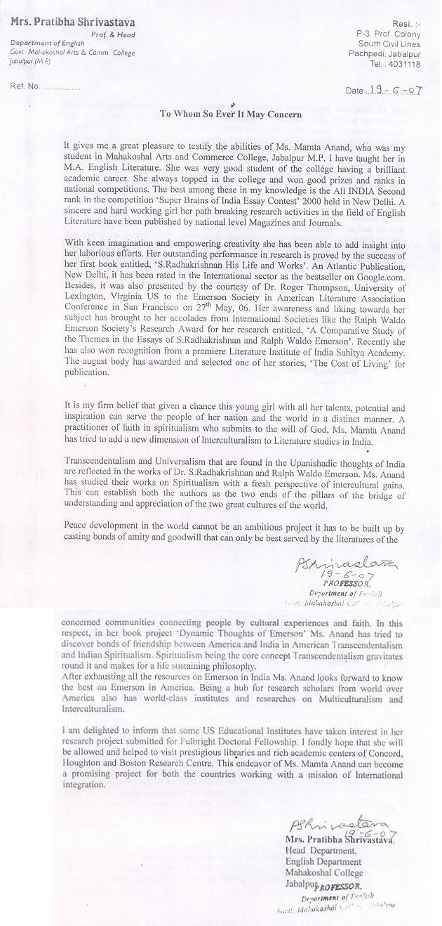 The study is founded on the writings of Dr.S.Radhakrishnan and Ralph Waldo Emerson.